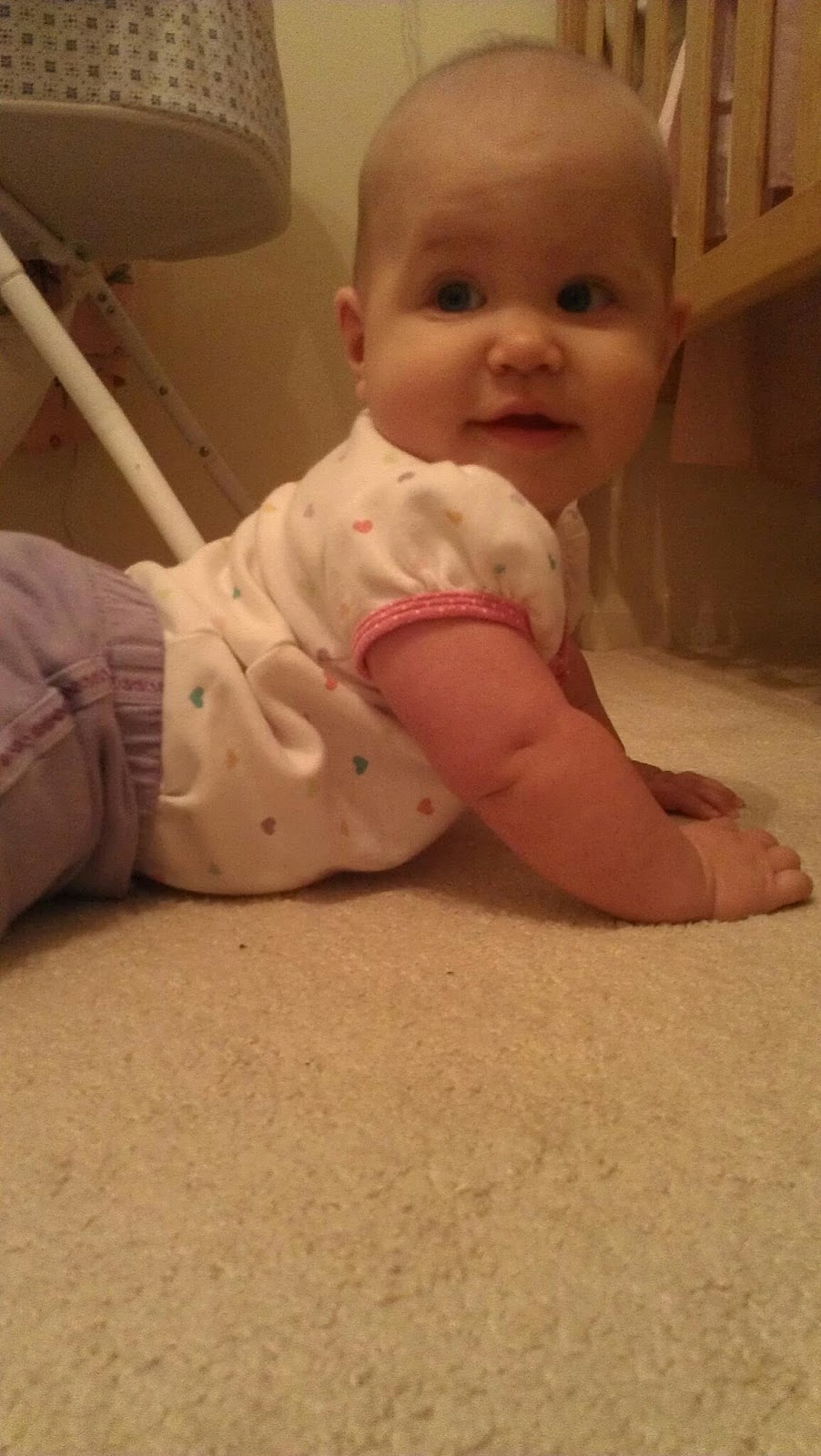 Our newest addition is 6 months old now!!! It has gone by so quickly! She is a perfect baby, of course, and everyone loves her to pieces. She truly is super happy and very copasetic. See for yourself! The first one is on her first playground swing. The rest just around the house.